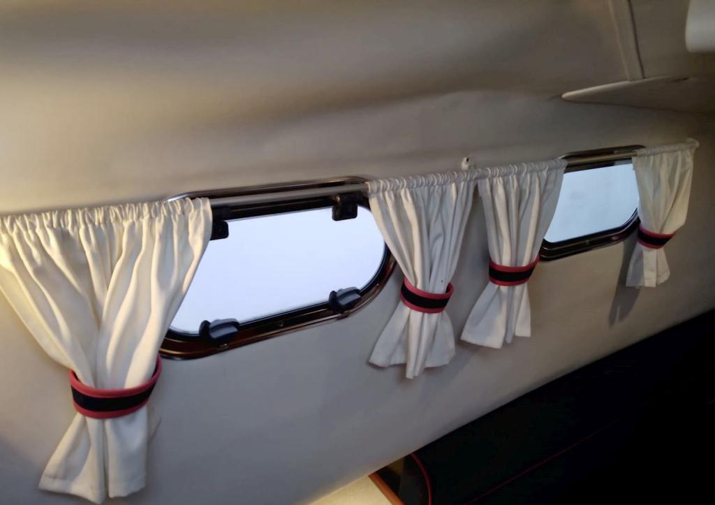 - Weiße Plissees für die Luken an den Seiten des Aufbaus